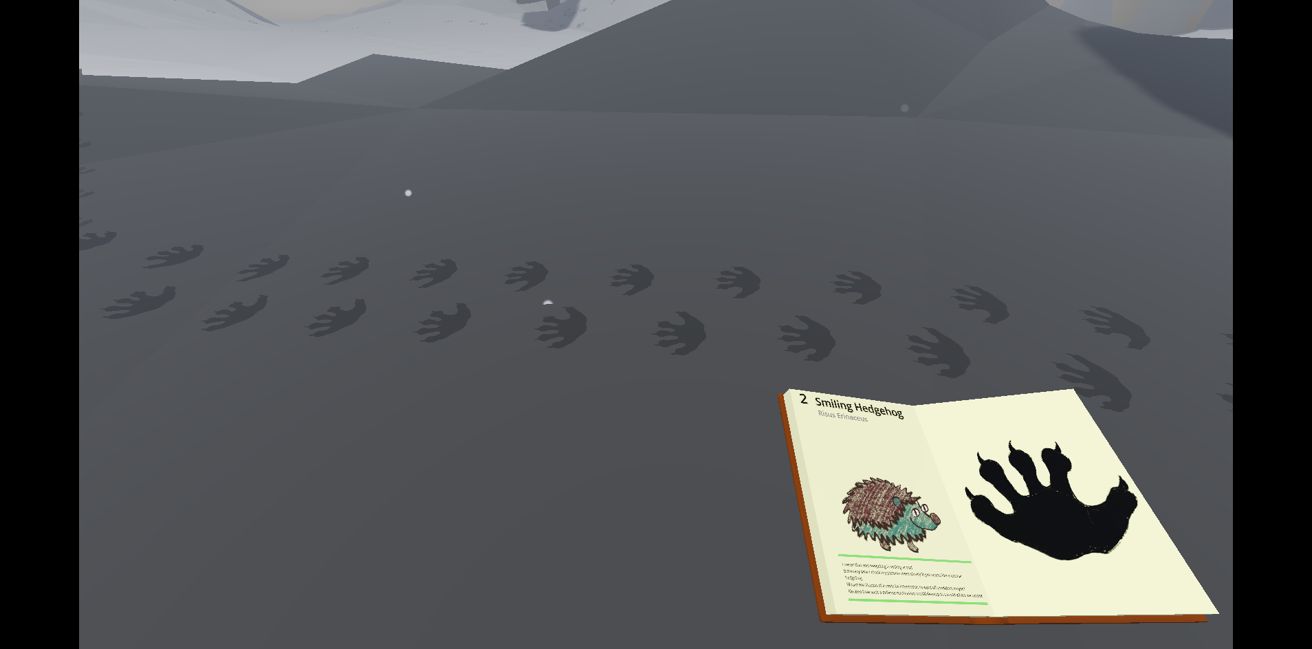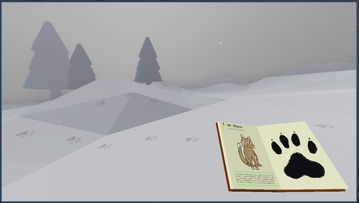 One day you woke up and just stopped existing. You still are. You just don’t exist, which has the annoying caveat that you’re now invisible. But you’re not alone, your cat (Mr. Mayor) also stopped existing. Mr. Mayor also went into the forest and hasn’t come back yet. Luckily it hasn’t stopped snowing since you stopped existing and you’re quite good at tracking footsteps. You’ll surely find Mr. Mayor, especially since you found a mysterious camera that makes things visible again. The pictures however also reveal that not all animals here are your friend…